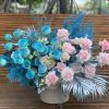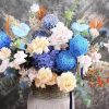 BÌNH HOA CÚP TONE VÀNG TRẮNG ,HOA LAN HỒ ĐIỆP , HOA HỒNG VÀNG ,HOA VŨ NỮ