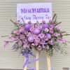 Kệ hoa chia buồn tone tím  hồng tím ,  hoa ly tím . cẩm chướng tím . kết hợp lan hồ điệp trắng .