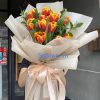 Mẫu hoa hồng đỏ nhập. phố với lá bạc kết hợp với giấy đen lớp lưới đỏ bên ngoài . làm bó hoa sinh động đẹp và sang hơn