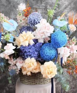 Bình hoa địa lan xanh ,hoa địa lan nỗi tiếng về độ bền caođược cắm vào bình thủy tinh sang trong , tinh tếkích thước 30cm x 50cm