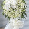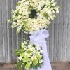 VÒNG HOA VIÊNG TONE TRẮNG 2 TẦNGKẾT LAN HỒ ĐIỆP, HỒNG TRẮNG , SOHOA SÓI TRẮNG