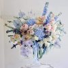 BÌNH HOA CÚP ,HOA CÁT TƯỜNG NHẬP HOA HỒNG LÁ BẠC