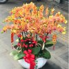 CHẬU LAN HỒ ĐIỆP HỒNG ĐẬM ,VÀO CHẬU SỨ TRÒN,10 CÂY LAN ,TRANG TRI NAN TRE ĐỎ