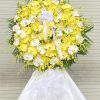 VÒNG HOA CHIA BUỒNKẾT HOA HỒNG KEM, HOA LAN HỒ ĐIỆPTRANG TRÍ NƠ TRẮNG, KỆ GỖ